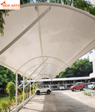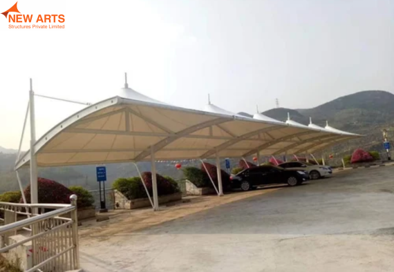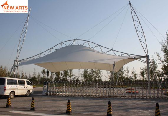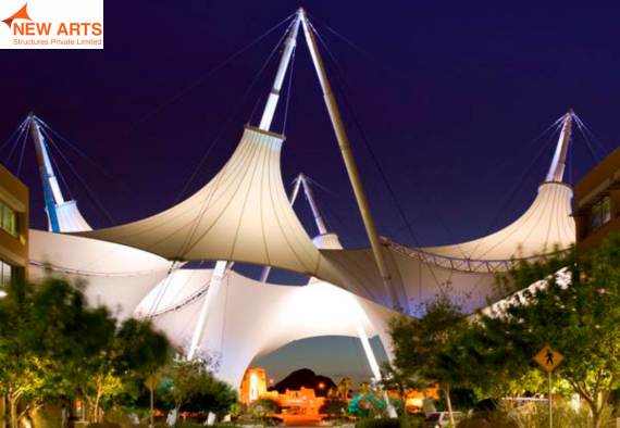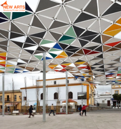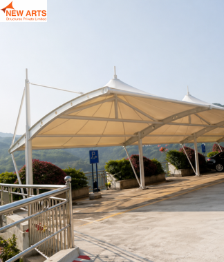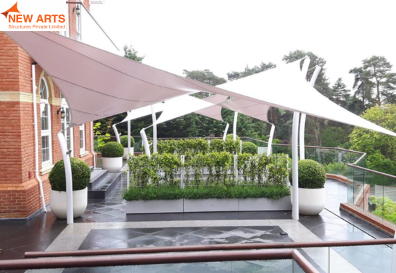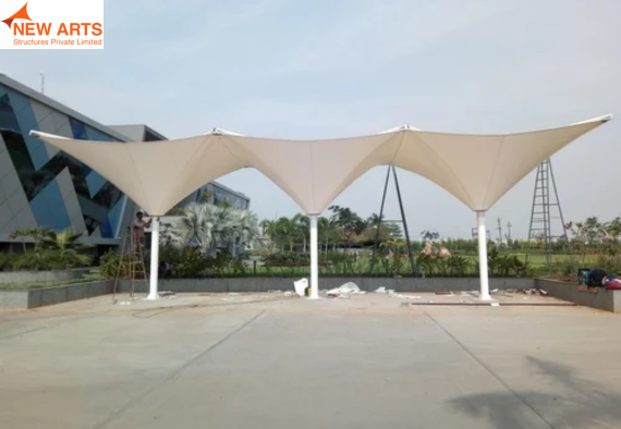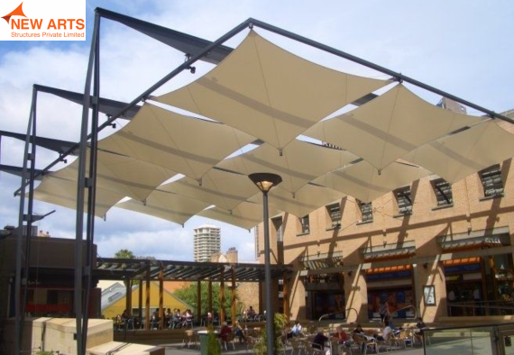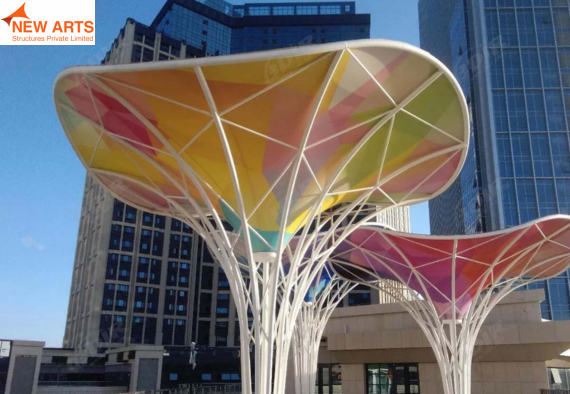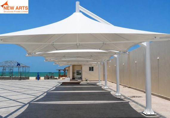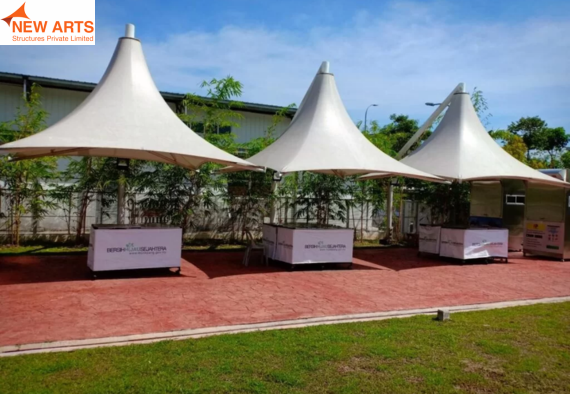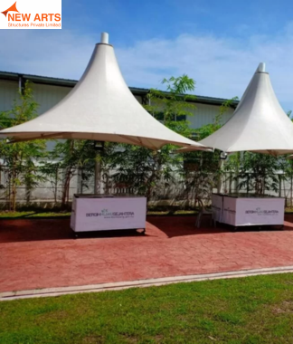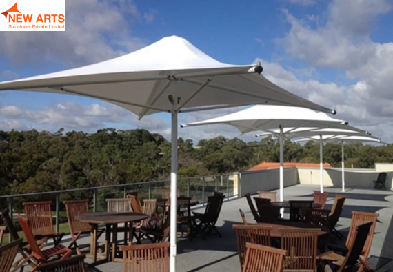 Tensile umbrella structures offer compact and effective shading solutions for outdoor spaces such as parks, commercial areas, and seating zones.